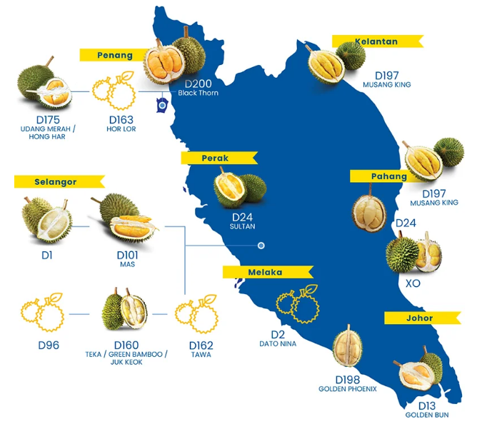 在馬來西亞,大約有200個榴蓮品種有自己獨特的風(fēng)味和香氣。同時它們也對適宜的生長條件也特定的需要,例如降雨,海拔,溫度和土壤結(jié)構(gòu)。榴蓮僅在成熟季節(jié)才有供應(yīng)那發(fā)生在每年的六月和七月。那個時節(jié)成熟后從樹上自然掉落的榴蓮,往往會含有較多的果肉和更濃郁的香氣。